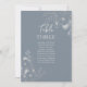 Elegant, vintage, boho wildflowers dusty blue double-side wedding table number - seating chart with silver floral lace and simple calligraphy script.