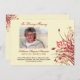 Remember your loved one with this lovely wildflowers memorial card. Graphic representations of wildflowers and grasses in red and brown grace the right edge of this memorial notice against a cream coloured background. Add a photo and customized information to the front. The flowers are repeated as corner objects on the reverse. To make changes to the card, including changing the font, font colour, font size, or text and/or photo placement, use the "customize it" option. Available in alternate colours.