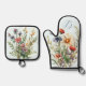 Wildflowers Monogram Initial Kitchen Oven Mitt & Pot Holder Set