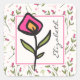 Stickers with your customized text and a pretty pink flower inside a square frame with a pink border. The background is a pattern with hand drawn pink wildflowers with long green stems and leaves on a eggshell white coloured background. Pink circles and sprigs also decorate the design. Whimsical and pretty floral design.