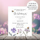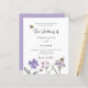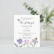 A white background. Decorated with bees and painted wildflowers in violet and pink. Personalize and add your names and the details.