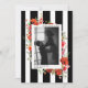 Conception de monogramme de mariage botanique avec verdure et fleurs sauvages y compris des pavots et marguerites avec arrière - plan rayé noir et blanc. Personnalisez avec votre photo et votre texte.