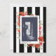 Conception de monogramme de mariage botanique avec verdure et fleurs sauvages y compris des pavots et marguerites avec arrière - plan rayé noir et blanc. Personnalisez avec votre photo et votre texte.