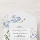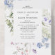 This trendy Wedding invitations features watercolor light blue and violet, pale pink wildflowers, greenery