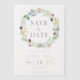 Elegant wildflowers wreath translucent vellum paper wedding save the date with a simple and minimalist design and with a mix of a script and serif fonts. The design features pretty flowers and green leaves, ideal for a floral or greenery spring or summer wedding. Please check the collection for matching suite stationery products.