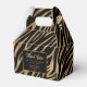 Embrace your wild side with this glam safari-themed bachelorette favour box. Featuring a black and gold zebra pattern background and gold edged frame for your text. this tag exudes exotic luxury. The frame highlights 'Thank You, we're wildly happy you're here” typography in shiny gold lettering. Fully customizable to suit your safari party or bachelorette weekend, this favour box is ideal for a glamourous safari, jungle, or animal print-themed celebration. Search ID1151 to see other products in this fun bachelorette design set.