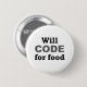 Will Code for Food button. Who doesn't love computer geek humour? Buy this funny button for yourself or as a gift for that special computer programmer in your life!