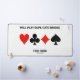 Les joueurs de pont dupliqués affamés de pont profiteront de ce tapis de bureau d'humour de pont wry avec les quatre costumes de carte ainsi que le dicton "Will Play Duplicate Bridge For Food". Faites faire aux autres une double prise avec une dose d'attitude de pont à votre prochain jeu de bridge avec ce tapis de bureau de relais mémorable!