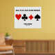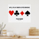 No need to be an avid duplicate bridge player to enjoy this poster featuring the four card suits along with the saying that will make other bridge players do a double-take at what you're willing to do: "Will Play Duplicate Bridge For Food".