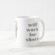 Drink your tea or coffee in style with this funny "will work for shoes" mug.