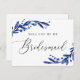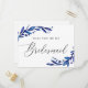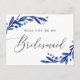 Will you be my bridesmaid. Blue navy floral script Invitation Postcard