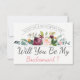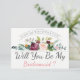 Bridesmaid proposal card with watercolor floral arrangement in burgundy, blush pink, orange and garden greenery. Personalize text, font style, colour and size.