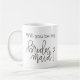 Will you be my bridesmaid coffee mug with black calligraphy lettering. Modern lettering designed by Joy by Jess.