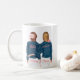Pretty "Will you be my Bridesmaid" coffee or tea mug. Features the back of a bride and her bridesmaid, matron of honour or maid of honour in jean jackets with their names. A great way to ask your friend to be in the wedding party. Wording can be changed. If you need a different hair colour, please contact me at tkatz@me.com
