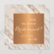 Personalized modern glamourous will you be my bridesmaid editable text card featuring a gold copper shiny metallic like square on a beige tan and grey taupe marble background. ------------- Ideal bridesmaid proposal for your summer, autumn fall or winter elegant classy wedding.