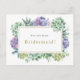 Ask your friends and family to be a part of your wedding with this floral "Will You Be My Bridesmaid" card featuring botanical green elements and watercolor succulents with feminine calligraphy script. Matching items are available. Bridal Party Proposal card