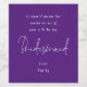 A different way to ask this very important question in purple and white. Bridesmaid is in a handwritten style white script in the centre and the rest of the text you can easily personalise. The background can be changed to a different colour if you wish via the customise further option.