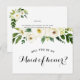 Ask your friends and family to be a part of your wedding with this floral "Will You Be My Maid of honour" card featuring beautiful white floral elements and green foliage with feminine calligraphy script. Matching items are available. Bridal Party Proposal card. Customize with your text.