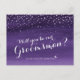 Save the date and ask if your friend if he will be your groomsman with this wedding starry night purple white postcard background sky painted in wash watercolor with a graphic star sparkle overlaid. Original wedding save the date postcard. Customize with names and wedding date to make your request to your groomsman to be. Perfect for a star studded friend or for a evening wedding event. Part of the starry night wedding set. An elegant exclusive design by Sarah Trett.
