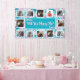 Personalized photos proposal banner. Will you marry me sign. Romantic proposal idea! Blue and pink striped background. Romantic way to propose on Valentine's Day.