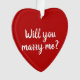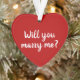 Will You Marry Me red and white custom script name proposal Christmas heart Ornament.