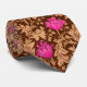 Tie in a vintage William Morris floral damask pattern of anemone flowers and leaves, digitally enhanced and coloured - light coffee brown leaves, and flowers in shades of deep fuchsia and coral pink on a dark chocolate brown background