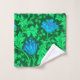 Towel set in a vintage William Morris floral damask pattern of anemone flowers and leaves, digitally enhanced and coloured - turquoise / peacock leaves, and flowers in shades of deep emerald green and turquoise, on a dark forest green background