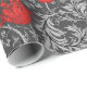Wrapping paper in a vintage William Morris floral damask pattern of anemone flowers and leaves, digitally enhanced and coloured - light silver grey / grey leaves, and flowers in shades of deep lipstick red on a dark graphite grey background