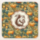 William Morris Autumn Pumpkin with Squirrel Retro Square Paper Coaster