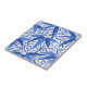 Ceramic tile in a vintage William Morris print of bamboo leaves and tendrils, digitally enhanced and coloured in a soft, textured, pastel crayon effect - shades of deep cobalt blue blue, accented with dark navy / indigo, on a white background