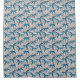 Shower curtain in a vintage William Morris print of bamboo leaves and tendrils, digitally enhanced and coloured in a soft, textured, pastel crayon effect - shades of soft to deep denim blue, accented with dark red and soft grey, on a white background
