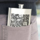 The product is a good size and came exactly as it was pictured. The lid is not attached to the flask, which could be dangerous on drunken nights... The print came out surprisingly well and looks very sharp. Would definitely recommend.