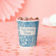 Vintage William Morris Marigold pattern in a deep limpet blue. A trendy blue-green that is harmonious with many styles, such as vintage, Victorian, coastal, Boho, etc. The message is completely customizable from the font to the colour; or you can choose to delete it. The chosen colours are oyster with a darker teal blue outline. Teal Blue and Oyster White.
