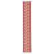 Long Table runner in a vintage William Morris, Art Nouveau, floral print of carnations, buds and leaves, in white on a deep cinnabar red background