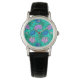 Watch in a vintage William Morris, Art Nouveau, floral print of stylized chrysanthemums, digitally enhanced and coloured, in shades of soft aqua and turquoise cerulean blue, and violet / lavender, on a teal / peacock background