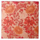 Ceramic tile in a vintage William Morris, Art Nouveau, floral print of stylized chrysanthemums, digitally enhanced and coloured, in shades of coral orange, deep mandarin, and soft orange, on a pastel orange / apricot background