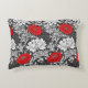 Accent pillow in a vintage William Morris, Art Nouveau, floral print of stylized chrysanthemums, digitally enhanced and coloured, in shades of silver grey /grey and white, accented with deep red, on a dark graphite grey background