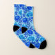 Socks in a vintage William Morris, Art Nouveau, floral print of stylized chrysanthemums, digitally enhanced and coloured, in shades of denim blue and deep indigo on a light blue and white background
