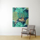 Tapisserie dans une tapisserie de William Morris de trois cerfs à côté d'un ruisseau dans une forêt d'imaginaires dans les tons vert doux et aqua, contre un arrière - plan bleu indigo foncé