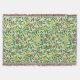 Throw in a William Morris Art Nouveau pattern of lemons, pomegranates, and peaches, with blossoms, on leafy branches - fruit in yellow and coral orange, with green leaves, against a patterned, yellow and white background