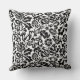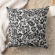 Throw pillow in a vintage William Morris floral damask pattern, digitally enhanced and coloured, in black on a white background