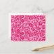 Postcard in a vintage William Morris floral damask pattern, digitally enhanced and coloured, in deep fuchsia pink on a pastel pink background