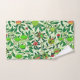 Serviette sertie dans un William Morris Art Nouveau motif de citrons, grenades et pêches, avec fleurs, sur branches feuillues - fruit en vert citron et orange corail, avec feuilles verts, contre un arrière - plan à motifs, vert citron et blanc