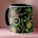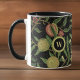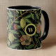 This two-sided coffee mug design is based on the lush William Morris "Fruit" pattern in vintage greens and rusty salmon colours set against a rich black. It also includes an initial monogram on each side of the mug, so make sure to update your initial in the Personalized section. You can also apply the design to multiple styles of mugs as well as a stein or glass.
