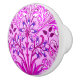 Knob in a vintage William Morris pattern of hyacinths, tulips and leaves, in shades of violet, plum, and white, accented with deep purple and eggplant, on a pastel lavender / light purple background