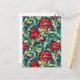 An stylish floral pattern of red flowers and leaves on a blue background, inspired by the famous English Arts and Crafts designer William Morris.