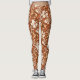 Leggings patterned in a vintage William Morris floral print of stylized lilies and Irises, digitally enhanced and coloured, in shades of rust, tan, light brown, and creamy white on a dark chocolate brown background