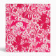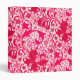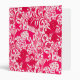 Binder in a vintage William Morris floral print of stylized lilies and Irises, digitally enhanced and coloured, in shades of light to deep fuchsia pink and deep wine red on a white background