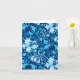 Card in a vintage William Morris floral print of stylized lilies and Irises, digitally enhanced and coloured, in shades of sky blue and white on a dark indigo blue background, digitally coloured and enhanced