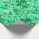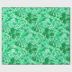 Wrapping paper in a vintage William Morris floral print of stylized lilies and Irises, digitally enhanced and coloured, in shades of light to dark jade green on a white background